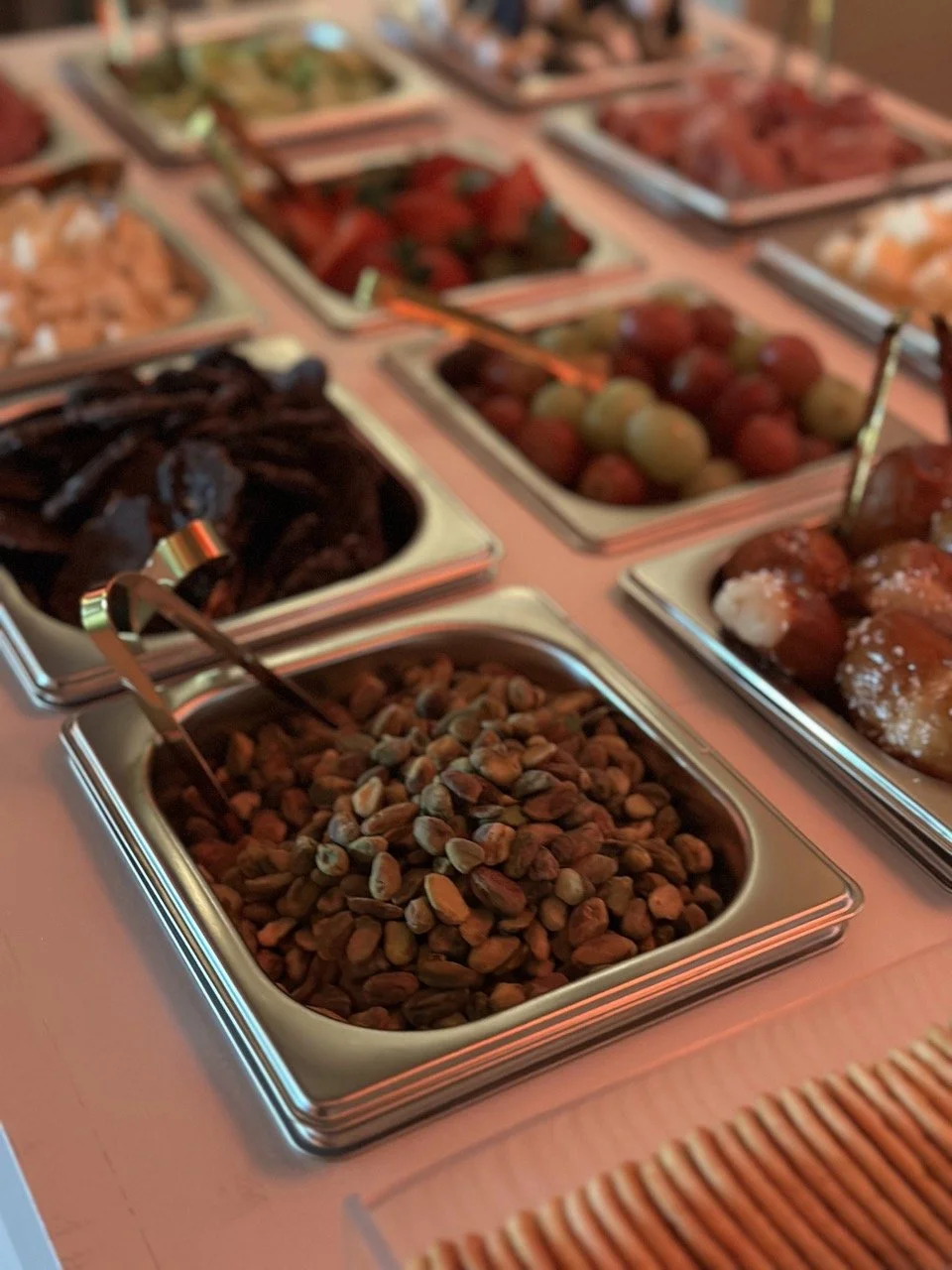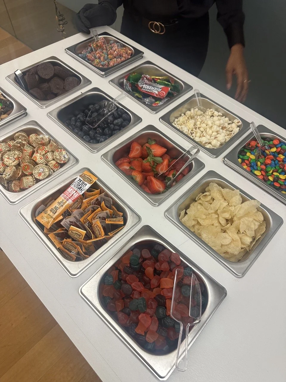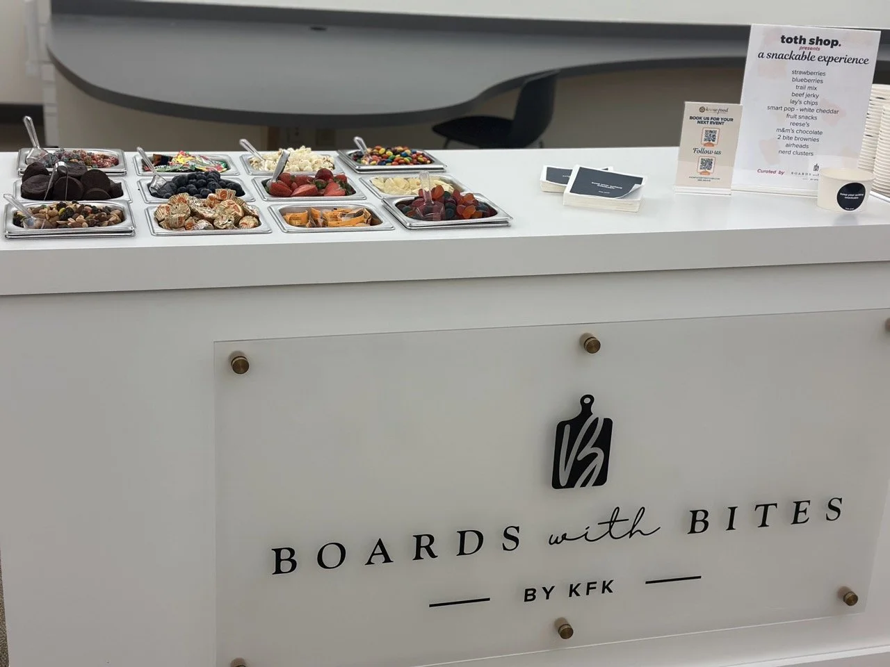 Charcuterie, snack cart, candy cart, ice cream cart, parfait cart, s’mores, noodle cart, salad bar, fruit and yogurt, etc. The options are endless!